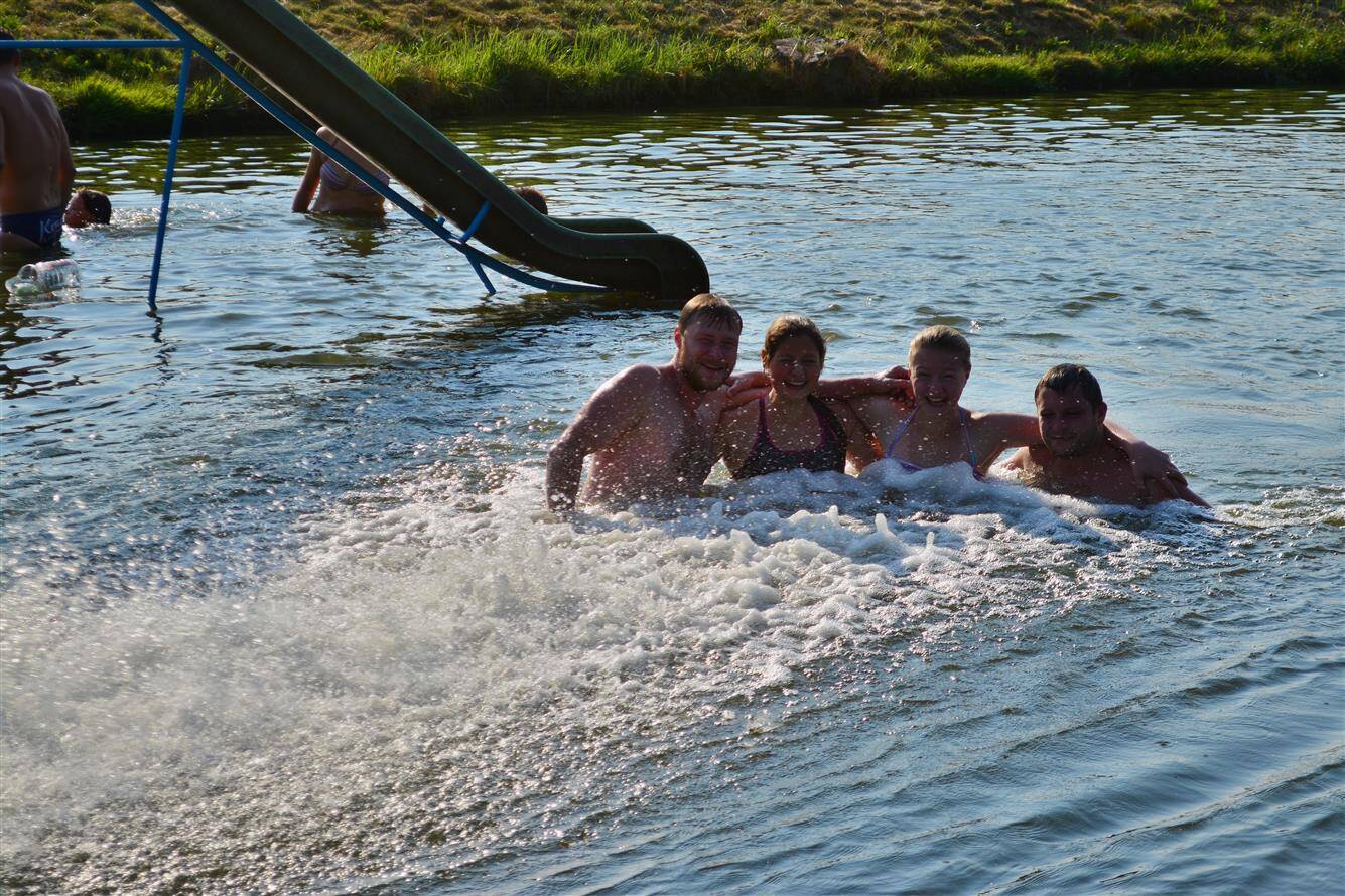 Umístění skluzavky do rybníka Žleb 2015